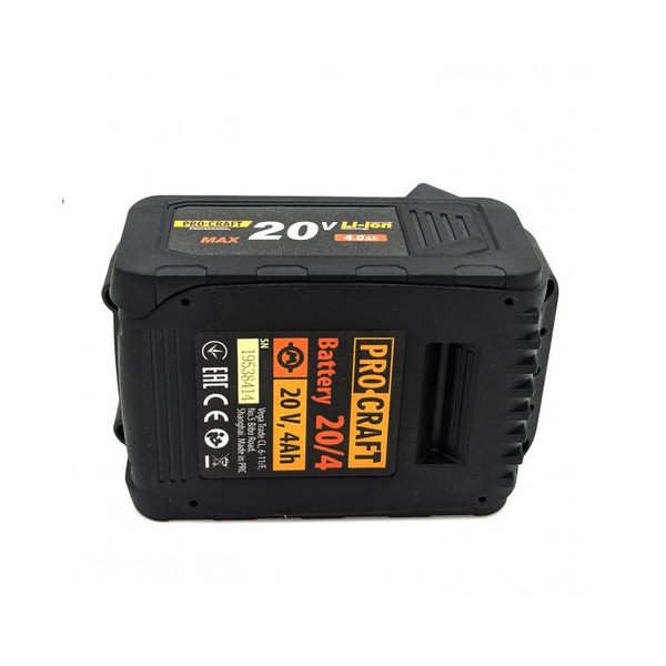 Батерия Procraft 20V, 4Ah - 20/4 \nТегло: 0,675 кг \nНапрежение на батерията: 20V \nТехнология на батерията: Li-Ion \nИндикатор за батерията: да \n \n- наличие на защита срещу прегряване, което помага да се предпази устройството от изгаряне, което е много важно предимство на модела; \n- защита от презареждане значително увеличава живота на батерията;