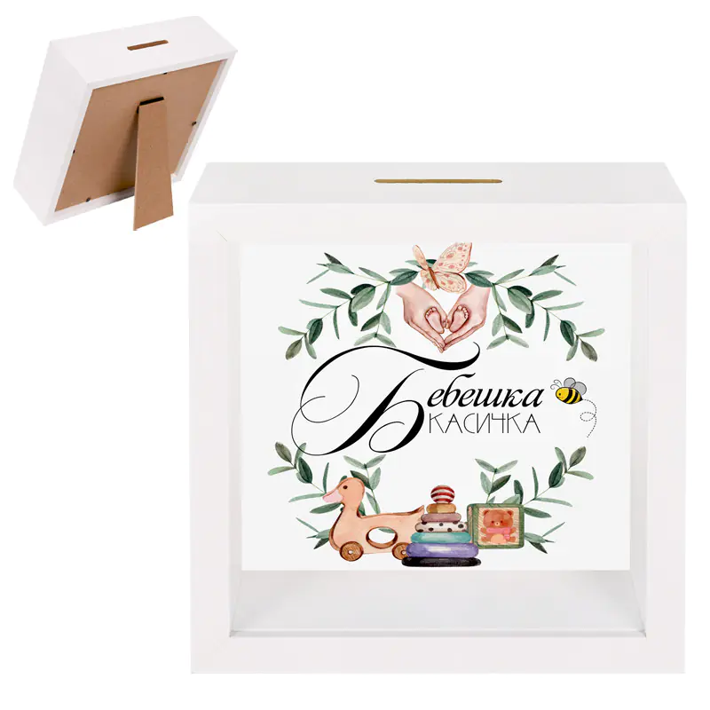 3D Касичка тип рамка с надпис Бебешка касичка.