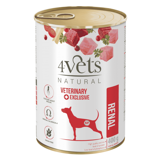 4Vets Natural Kidney Support е пълноценна храна за кучета с хронична бъбречна недостатъчност.