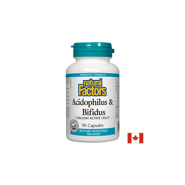 Ацидофилус Бифидус 5 млрд. активни пробиотици е първокласен пробиотик на Natural Factors допринасящ за нормалното функциониране на стомашно-чревния тракт и здравословното състояние на чревната микрофлора.