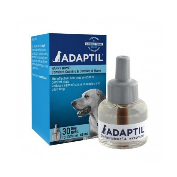 Adaptil е синтетичен еквивалент на феромона, секретиран от кучките,за да успокоят техните малки при контакт. Adaptil помага на кучетата да се справят по-добре със стресиращите ситуации: