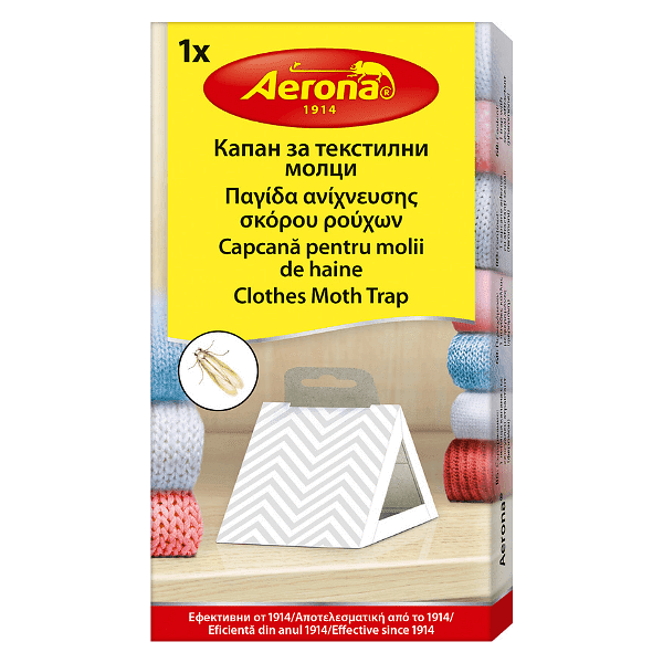 • Безопасен и ефективен, без мирис• Силно лепящ• За употреба в гардероби• Нетоксичен и готов за употреба• Действа в продължение на 3 месеца• Срок на годност: 4 години• Без биоцид• Произведен в ГерманияПериод на прилагане: Февруари - НоемвриСъстав: Примамка (феромон), синтетично лепилоНачин на действие: Прилепващата вътрешна повърхност улавя молците, привлечени към примамкатаот феромона, включен в лепилото. Този феромон имитира аромата, отделян от женския молец, като потози начин привлича мъжкия. Тази съставка е много специфична за молците и не привлича другивидове. Така всяко нашествие може да бъде овладяно в зародиш.Инструкции за употреба: Отворете опаковката с ножици и извадете примамката от пликчето. Сгънетеклапите отстрани към вътрешната повърхност и отстранете бялата защитна хартия с едно бързодвижение. Капанът вече е активен и ще действа 3 месеца. Веднъж сглобен, поставете капана напредвиденото място (на тъмно, далеч от течения, врати и прозорци). Сменете капана след 3 месеца,или по-рано, ако е покрит с молци. Препоръчваме ви непрекъснато да използвате примамката, за даулавяте всяко ново заразяване.Съдържание: 1 бр