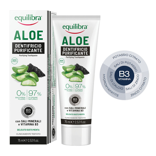 Активен въглен - ефективно и нежно почиства; Алое вера (30% Алое вера) - успокоява, регенерира, защитава; Чаено дърво - действа антисептично; Ментол - добавя естествена свежест; Стевия - за приятна и безвредна сладост. Редовното използване премахва плаката, предпазва зъбите от зъбен камък и увреждане, осигурява естествено избелващо действие, заздравява венците. Гел-паста с контролирана абразивност без да уврежда зъбния емайл.