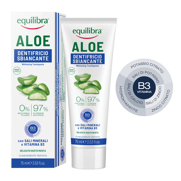 Деликатен гел със свеж вкус, който съчетава успокояващото действие на алое вера(30%), салвия, арника и витамин В3, с естественото избелващо действие на силициев диоксид и перлит . Тетракалиевият пирофосфат предпазва от кариес, допринася за премахване на петна от зъбите. Маслото от чаено дърво действа антисептично, исландският лишей добавя избелващ ефект. Ментолът естествено освежава устната кухина. Съдържа специален минерален комплекс: хидроксиапатит - намалява чувствителността на зъбите в дългосрочен план, калиев цитрат - моментно действие за намаляванте чувствителността на зъбите, цинков цитрат - действа антибактериално и предотвратява образуването на зъбен камък.