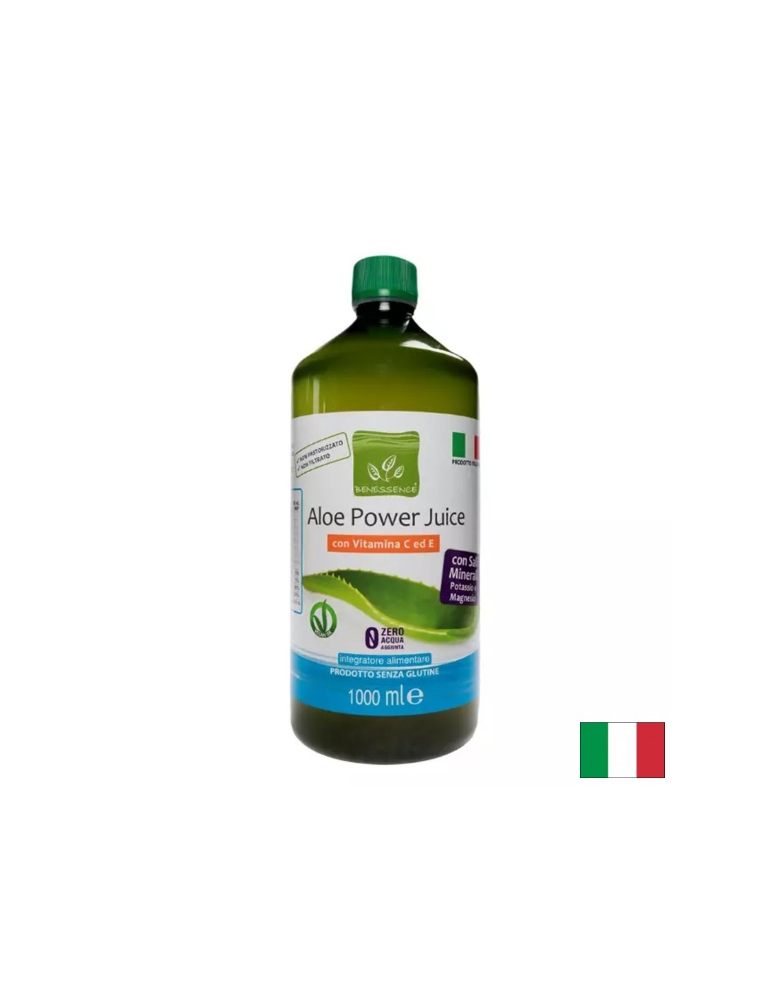 Алое Вера (сок и пулпа от лист) + витамин С и Е и минерали на италианската компания Benessence e натурална и органична хранителна добавка в подкрепа нормалното състояние на стомашно-чревния тракт, имунната система и мускулите