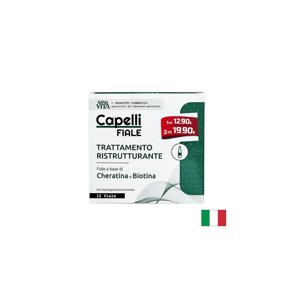 Sanavita Capelli Fiale е иновативен продукт за грижа за косата, разработен от италианската фармацевтична компания Paladin Pharma. Предлаган в опаковка от 12 ампули по 10 мл, този продукт е специално създаден за подпомагане на здравето и възстановяването на косата. Формулата съдържа биотин и хидролизиран кератин, които са известни със своите възстановяващи и подхранващи свойства.