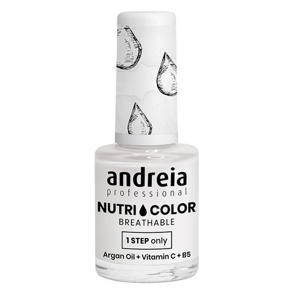 Andreia Nutri Color е класически лак за нокти с траен ефект. Нанася се лесно и се премахва без усилие. Подходящ е за класически или модерен маникюр. Изсъхва много бързо и не изисква лампа. Устойчив е до 7 дни. Пропусклив за водни пари, създаден с помощта на усъвършенствана технология VEGAN.