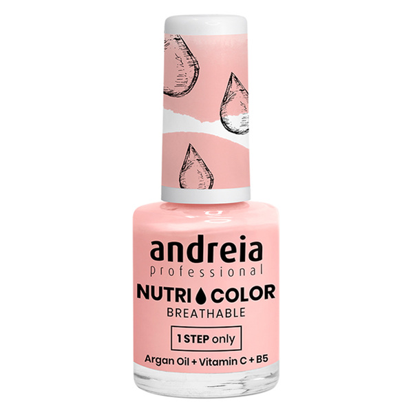 Andreia Nutri Color е класически лак за нокти с траен ефект. Нанася се лесно и се премахва без усилие. Подходящ е за класически или модерен маникюр. Изсъхва много бързо и не изисква лампа. Устойчив е до 7 дни. Пропусклив за водни пари, създаден с помощта на усъвършенствана технология VEGAN.