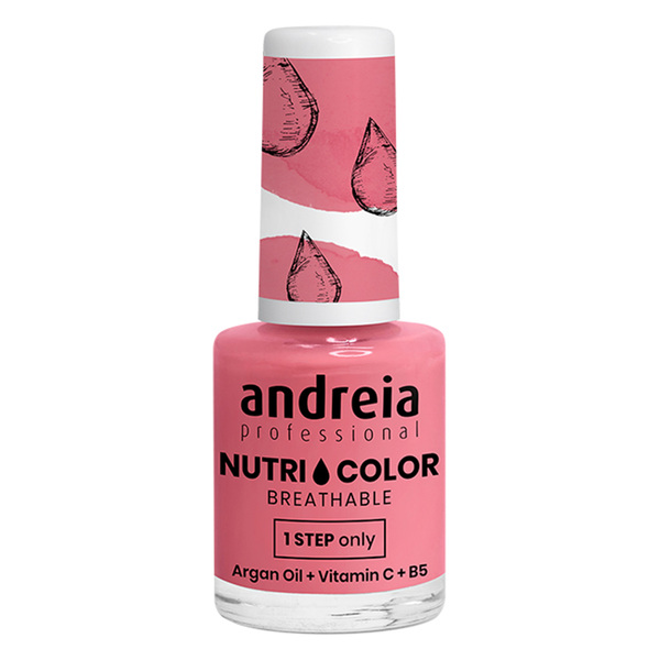 Andreia Nutri Color е класически лак за нокти с траен ефект. Нанася се лесно и се премахва без усилие. Подходящ е за класически или модерен маникюр. Изсъхва много бързо и не изисква лампа. Устойчив е до 7 дни. Пропусклив за водни пари, създаден с помощта на усъвършенствана технология VEGAN.