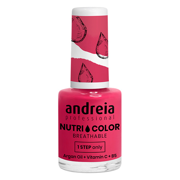 Andreia Nutri Color е класически лак за нокти с траен ефект. Нанася се лесно и се премахва без усилие. Подходящ е за класически или модерен маникюр. Изсъхва много бързо и не изисква лампа. Устойчив е до 7 дни. Пропусклив за водни пари, създаден с помощта на усъвършенствана технология VEGAN.