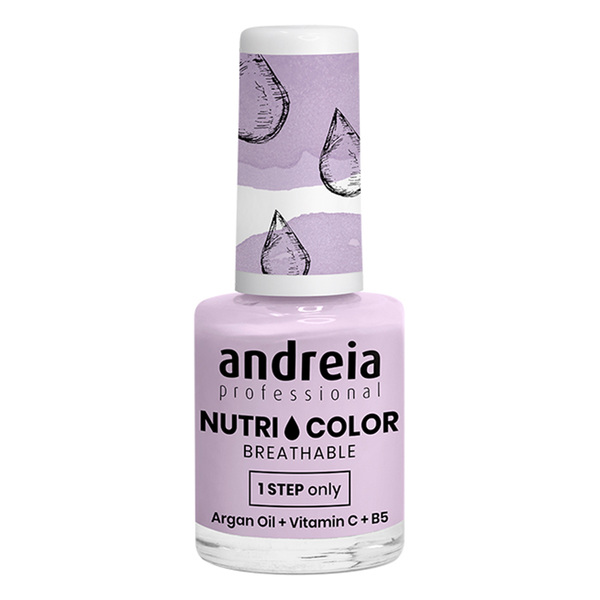 Andreia Nutri Color е класически лак за нокти с траен ефект. Нанася се лесно и се премахва без усилие. Подходящ е за класически или модерен маникюр. Изсъхва много бързо и не изисква лампа. Устойчив е до 7 дни. Пропусклив за водни пари, създаден с помощта на усъвършенствана технология VEGAN.