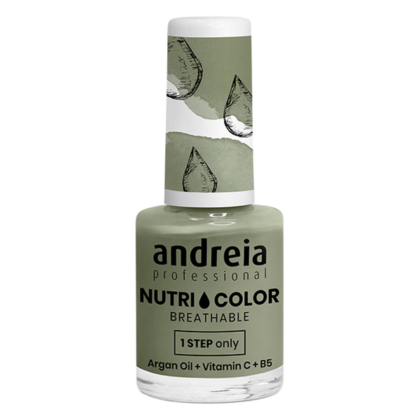 Andreia Nutri Color е класически лак за нокти с траен ефект. Нанася се лесно и се премахва без усилие. Подходящ е за класически или модерен маникюр. Изсъхва много бързо и не изисква лампа. Устойчив е до 7 дни. Пропусклив за водни пари, създаден с помощта на усъвършенствана технология VEGAN.