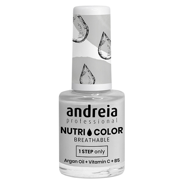 Andreia Nutri Color е класически лак за нокти с траен ефект. Нанася се лесно и се премахва без усилие. Подходящ е за класически или модерен маникюр. Изсъхва много бързо и не изисква лампа. Устойчив е до 7 дни. Пропусклив за водни пари, създаден с помощта на усъвършенствана технология VEGAN.
