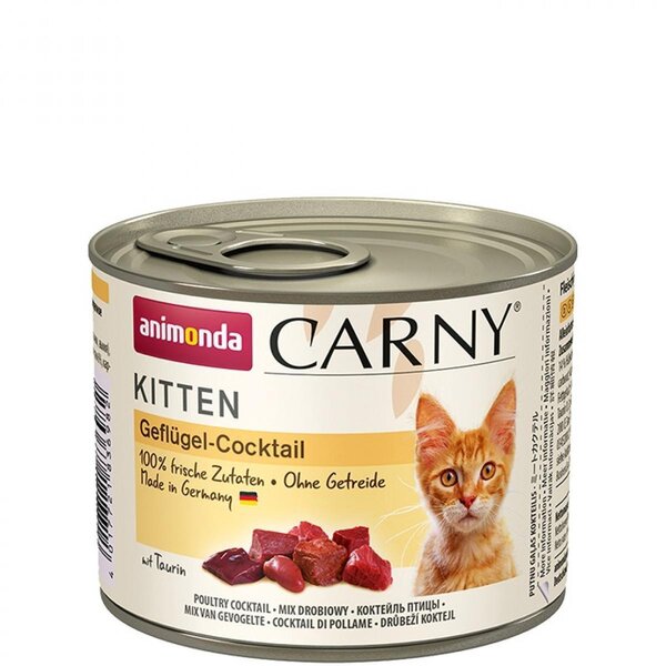 Консервите Animonda Carny ® Kitten съдържат чудесно прясно месо, което може да изкуши всяко котенце. Предназначени са за мъркащи красавци до 12 месеца и включват специална селекция от прясно месо, както при всяка серия Animonda Carny ®. Минералното съдържание и размерът на храната са съобразени с възрастта на котката. Типичната структура на месото е напълно запазена и това може ясно да се види. А вкусът е истински и неповторим, което котките ценят повече от всичко.
