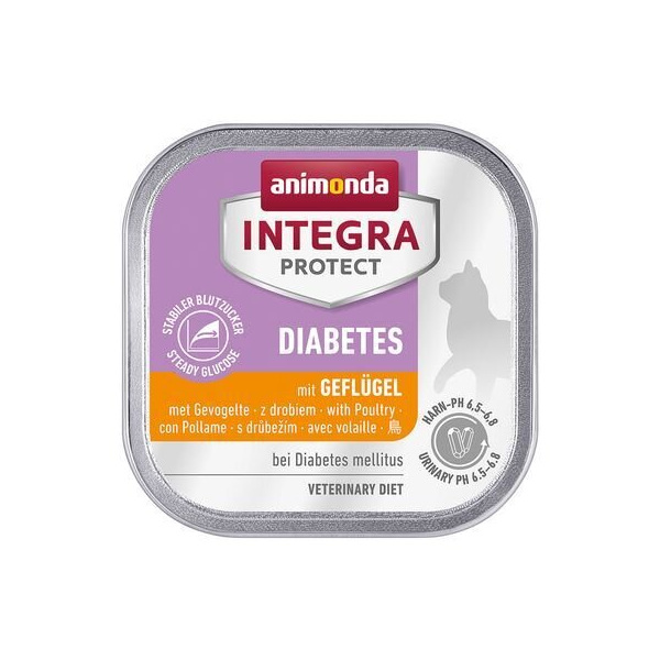 За котките с диабет, балансираното хранене, съобразено със спецификата на тяхното заболяване, е особено важно. animonda Integra Protect Adult Diabetes диетична консервирана храна за, разработена специално с цел да спомага за поддържане на устойчиво ниво на кръвната захар. Храната се предлага в различни варианти, а повечето котки я приемат много добре.animonda Integra Protect Adult Diabetes се отличава с високо съдържание на протеини, спомага за поддържането на мускулна маса.