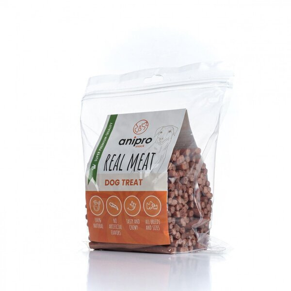 Всички лакомства в серия anipro REAL MEAT са с високо съдържание на протеини и много ниско съдържание на мазнини между 3 и 5%.