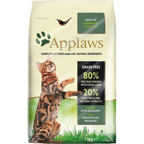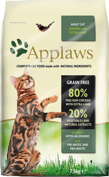 Applaws Cat Adult Chicken & Lamb е пълноценна храна за израснали котки 80% пилешко и агнешко + 20% зеленчуци и натурални екстракти.
