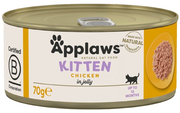 Вкусна мокра храна за подрастващи котки, с най-висококачествено пилешко и рибно месо, комбинирани с чисти, натурални съставки, богати на омега-3 и -6 мастни киселини, без глутен и добавки.