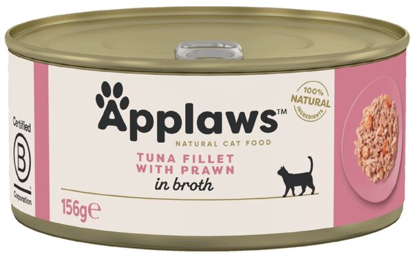 Риба тон и Скариди 100% Напълно естествена храна за котки в зряла възраст. Висококачествена мокра храна за котки, предлагана в гама от вкусни вкусове, приготвена със 100% натурални съставки без изкуствени консерванти, оцветители или подобрители на вкуса, идеална като допълнителна храна. Рибата е богата на незаменими аминокиселини и мастни киселини, като Омега 3 - Омега-6. Ние гарантираме, че нашата риба е уловена прясна от морето, като са използвани методи, щадящи делфините. Не съдържа нищо повече от четирите изброени съставки: Филе от риба тон 52%, Рибен бульон 24%, Скариди 23%, Ориз 1%. Applaws използва само най-висококачествени съставки, подходящи за хора, предоставяйки на вашата котка истинско вкусово изживяване. За мократа храна за котки Applaws се използват само 100% натурални съставки  с най-високо качество. Натурални съставкиСъставките, използвани в мократа храна Applaws, са добити по най-високите етични стандарти. Висококачествени протеиниМократа храна Applaws осигурява висококачествени протеини, които са важни за поддържането на мускулите. Високо съдържание на влагаВисокото съдържание на влага в мократа храна Applaws помага на вашата котка да остане хидратирана. Източник на Омега-3 и -6.Тези мастни киселини спомагат за еластична кожа и красива козина. Месото или рибата са богати на протеини и осигуряват много омега-3 и омега-6 мастни киселини . Не се добавят никакви други вещества, което означава, че няма скрити оцветители, ароматизатори или добавки. Ще видите разликата в момента, в който отворите консервата: естествената консистенция на тази  безглутенова  храна ще ви зарадва, а вашите котки ще я харесат!Висококачествена мокра храна за възрастни котки Идеална добавка към ежедневните гранули 100% натурални съставки:  висококачествени парчета месо или риба като източник на омега мастни киселини Без добавки:  без изкуствени оцветители, подобрители на вкуса или консерванти Без глутен:  оризът е лесно смилаем източник на въглехидрати Високо съдържание на протеини:  богато на месо и подходящо за вида Във вкусен бульон:  за подпомагане на достатъчния прием на течности Разнообразни вкусове:  всеки сорт е облагороден с висококачествени съставки Ясно деклариране на съставките