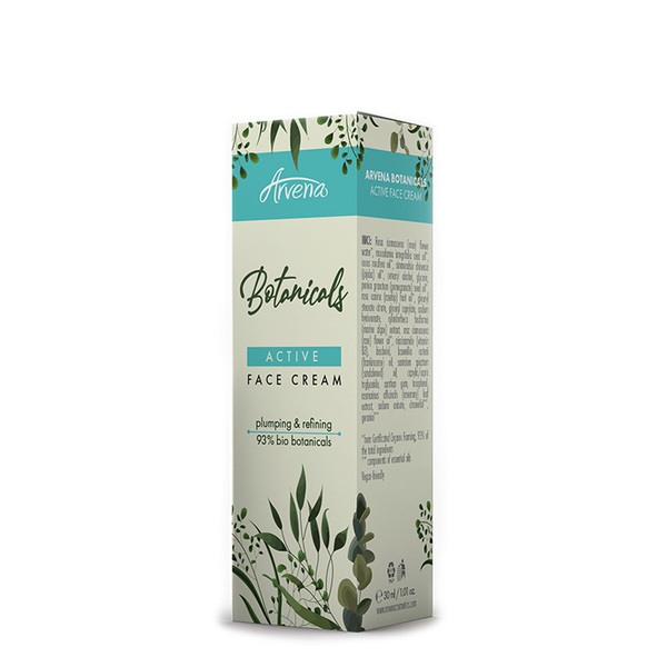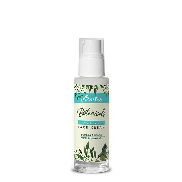 АРВЕНА БОТАНИКЪЛС АКТИВЕН КРЕМ ЗА ЛИЦЕ умело съчетава био растителни масла и активни съставки, които взаимно се допълват и подсилват своето действие и осигуряват видимо подмладяване на кожата. Екстрактът от морско водорасло доказано стимулира производството на колаген, натуралната хиалуронова киселина бързо възстановява водния градиент и изглажда фините бръчки. Още на втората седмица от редовната употреба на крема, кожата става по-еластична, по-плътна и тонизирана.