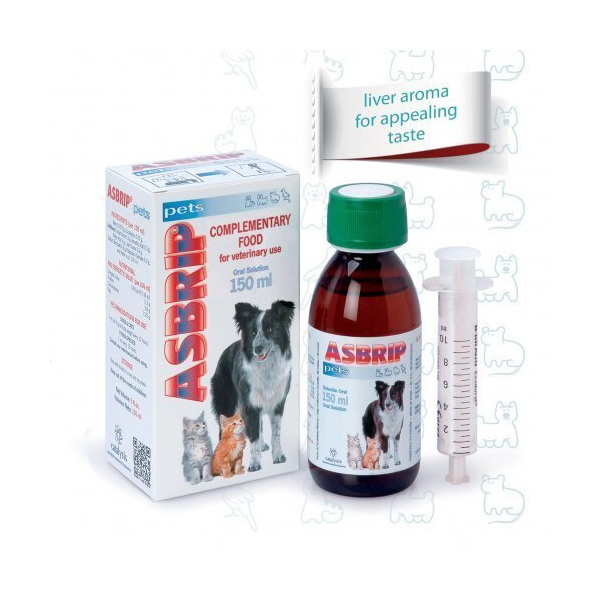 Asbrip Pets е специално предназначен за поддържаща терапия при магарешка кашлица, загуба на глас, ларингити, фарингити и други респираторни заболявания.Asbrip Pets има мощно отхрачващо действие, което изчиства респираторния тракт като подпомага ефективността от конвенционалното лечение. Молекулярно активираните съставки в Asbrip повишават имунитета и редуцират оксидативния стрес.