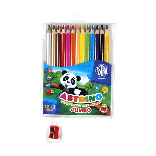 Комплект триъгълни цветни моливи, Astra, Astrino, 12 цвята, С острилка и допълнителен цвят