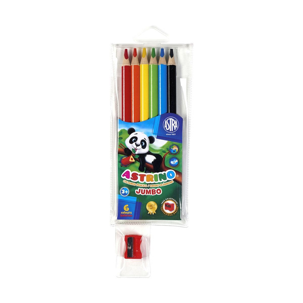 Комплект триъгълни цветни моливи, Astra, Astrino, 6 цвята, С острилка