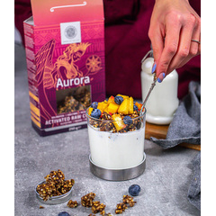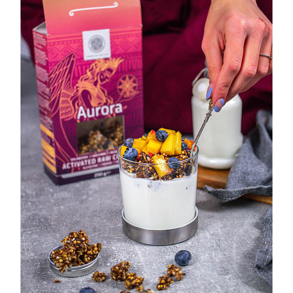 - 100% натурален състав със сурови активирани семена и сушени плодове, отгледани чрез контролирано биологично земеделие.