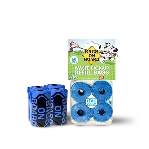 Резервните торбички Bags on Board можете да намерите в два цветови варианта – синьо и дъга. Те са доказаното решение по време на разходките, с което лесно се почистват кучешките изпражнения. Здрави и издръжливи.