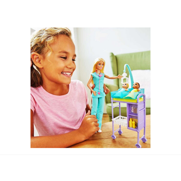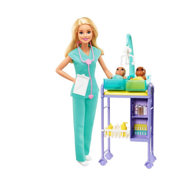 Изследвайте реалния свят с Барби, която практикува различни професии! Всяка кукла Барби е готова да упражнява професията си, в елегантна обстановка и с всички необходими аксесоари. Изберете от учител Барби, педиатър Барби, козметик за домашни любимци Барби, учител Барби или зъболекар Барби. Всеки комплект включва кукла Барби, облечена в подходящото облекло, много уникални аксесоари и домашен любимец или дете за грижи, в зависимост от професията.