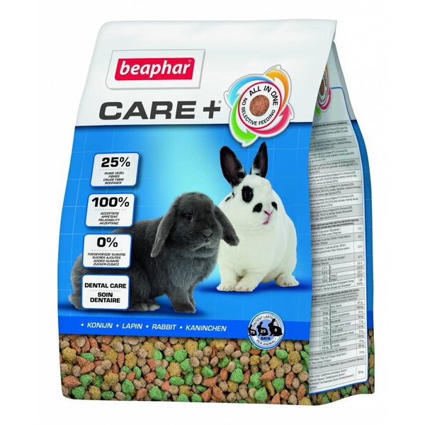 Разнообразието от съставки в Care+ осигурява зайците да бъдат здрави, жизнени и с осигурено дълголетие. Хранейки заека с Care+, можете да бъдете сигурни, че сте му осигурили най-добрата храна.