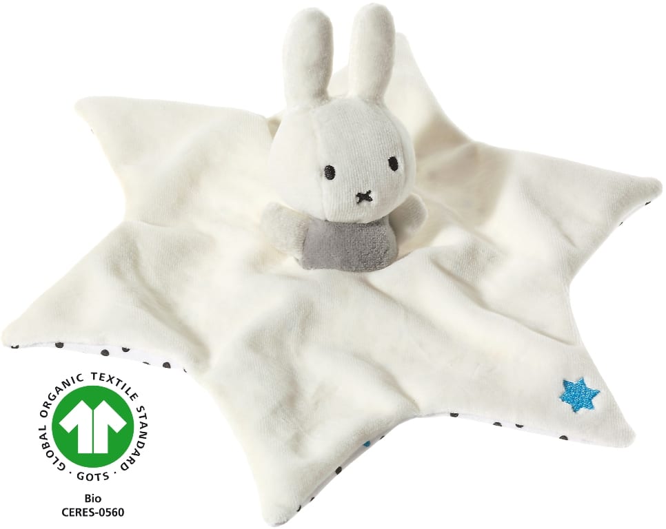 Особено меката "кърпа за гушкане" изработена от мек памук, е идеална за гушкане и любов. В меката среда седи зайче Мифи - верен спътник на бебета и малки деца. Със своите два различни материала отгоре и отдолу, звездообразната "кърпа за гушкане" помага на бебето да схване своя свят. Кърпата е и чудесна опора при заспиване. Приляга идеално в ръцете на бебето и става верен спътник, независимо дали у дома или в движение. Всички материали са сертифицирани по GOTS (Global Organic Textile Standard) и следователно не са токсични. GOTS е световно признат екоетикет за текстилна обработка от органично произведени естествени влакна - и забранява всякакво използване на проблемни химикали.