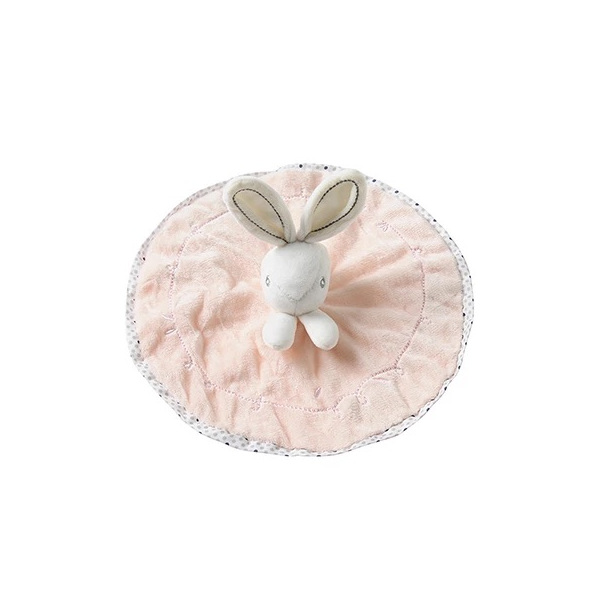 Плюшена бебешка кърпа със зайче в розово е прекрасен аксесоар за бебче.Изработена от подходяща материя, тя е чудесна за мачкане, гушкане и игра от най-малките!Незаменима бебешка играчка, която е напълно безопасна и може да поставите в леглото на бебето или в количката.Размер: 25 смСъстав: текстил, пълнеж и багрила безвредни за здравето, 100% полиестер.Отговаря на европейския стандарт за качество EN71.