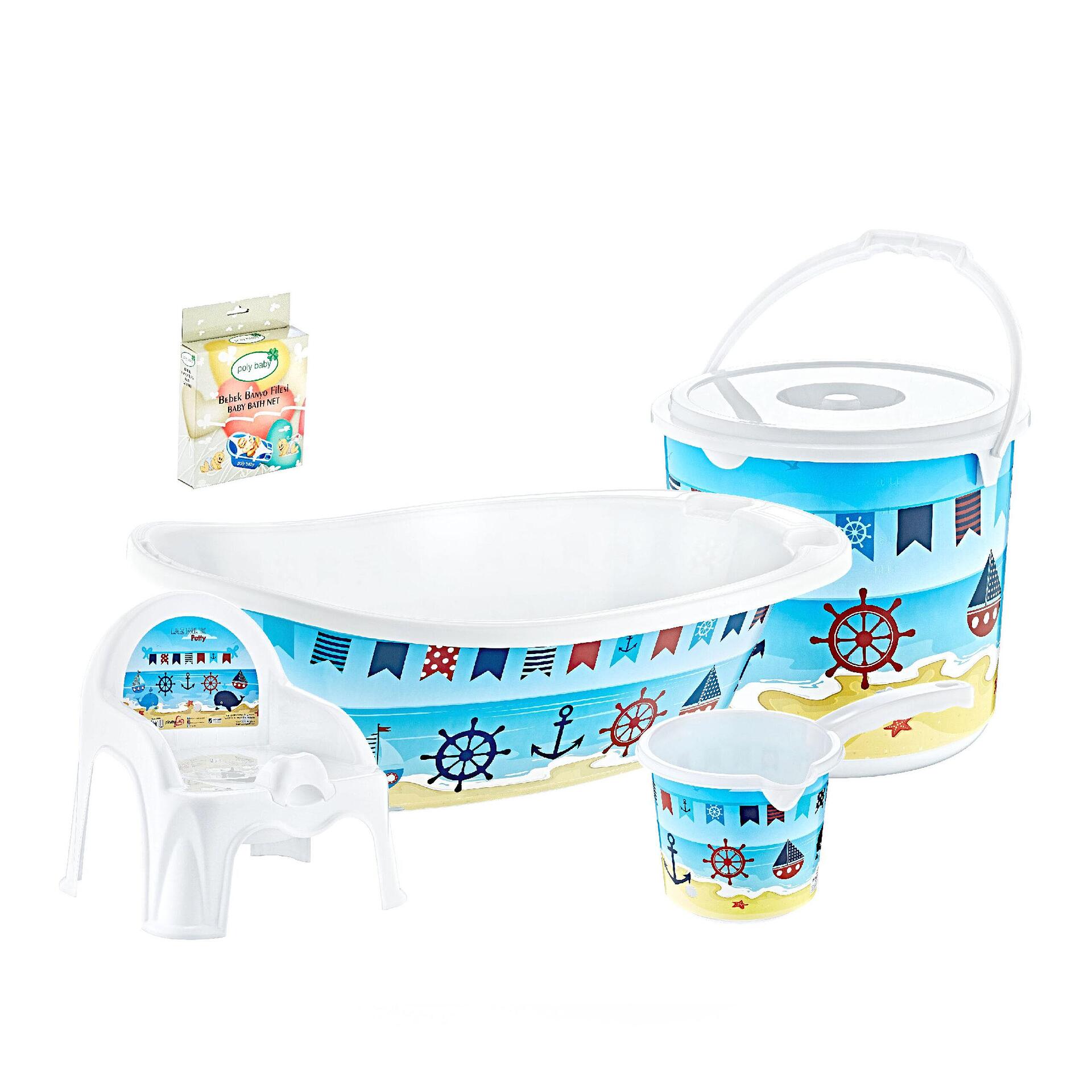 Бебешки комплект за баня. Комплектът включва: Вана за къпане Гърне Кофа Канче за поливане Постелка за ваничката