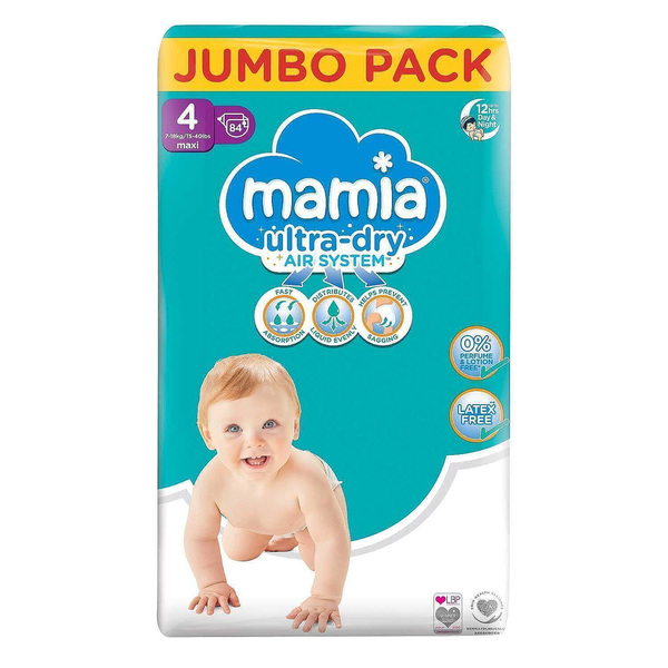 Памперсите МАМИА са хипоалергични и подлагани многократно на различни тестове.МАМИА са изключително меки и със специална защита срещу протичане;Памперсите MAMIA са невероятно удобни за носене, НЕ ограничават движението и прилепват идеално;Те са супер абсорбиращи, нито много тънки, нито много дебели. С разтегливи ушички и се поставят много лесно;Дерматологично тествани, хипоалергенни, дишащи и с релефни закопчалки;Изработени от специални сертифицирани влакна;