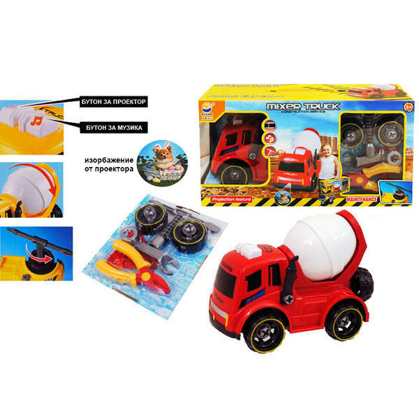 Бетоновоз с инструменти за разглобяване, музика и проектор /на батерии/.
