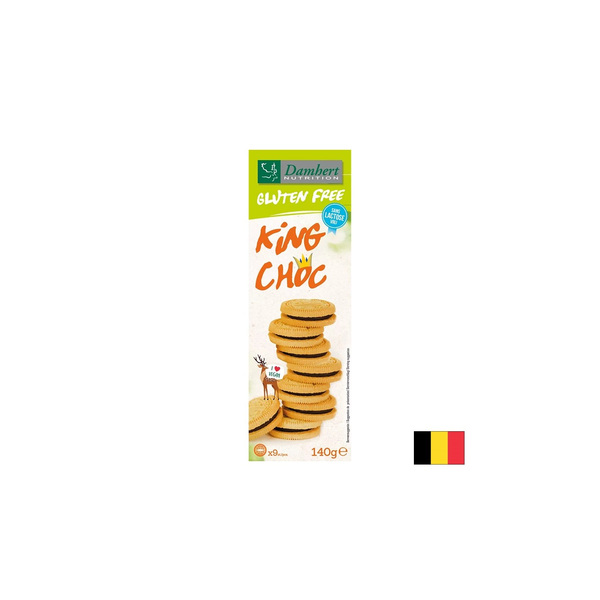 Gluten free King Choc, 140 грама са вкусни и хрупкави безглутенови бисквити, пълнени с наситен шоколадов крем. Създадени специално за хора с непоносимост към глутен или тези, които се придържат към безглутенова диета, те предлагат не само приятен вкус, но и са полезна алтернатива на традиционните сладкиши. Бисквитите съдържат внимателно подбрани съставки, които осигуряват отличен вкус и текстура, без да компрометират здравословните ползи на вложените суровини.