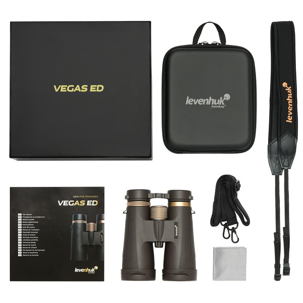 <p>Биноклите Levenhuk Vegas ED 12x50 са мощен оптически уред с голяма апертура и оптика от висок клас. Лещите и призмите със свръхниска дисперсия осигуряват отчетливо и детайлно изображение в цялото зрително поле, свеждат до минимум оптичните аберации и възпроизвеждат естествените цветове. Бинокли са неподатливи на тежки атмосферни условия и издържат на всякакви трудности, които могат да се срещнат при преходи или пътувания. Levenhuk Vegas ED 12x50 е отличен избор за ловци, рибари или за всеки, който обича активната почивка.</p>