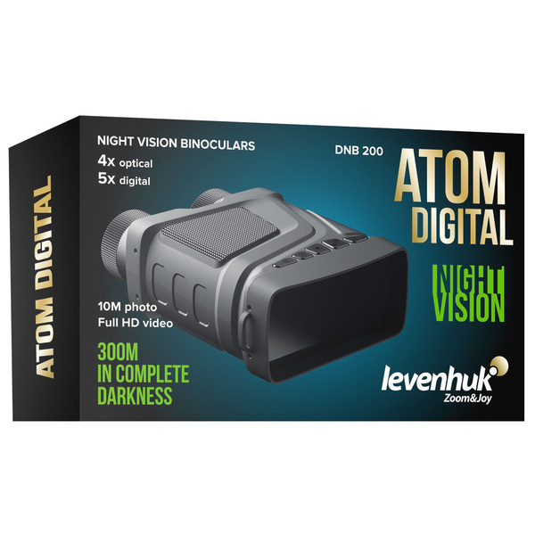 <p>Levenhuk Atom Digital DNB200 е бинокъл за нощно виждане с цифров преобразувател, мощно инфрачервено осветление и вграден дисплей с висока разделителна способност. Чрез този уред можете да наблюдавате удобно и да снимате при всякаква осветеност, като комбинирате оптичното увеличение на снимката и цифровото увеличение, което може да се регулира от 1 до 8x. Бинокълът е идеален за лов през деня и през нощта, за изследване на непознати зони, за наблюдение и мисии за търсене и спасяване. Цветно изображение през деня, черно-бяло през нощта.</p>