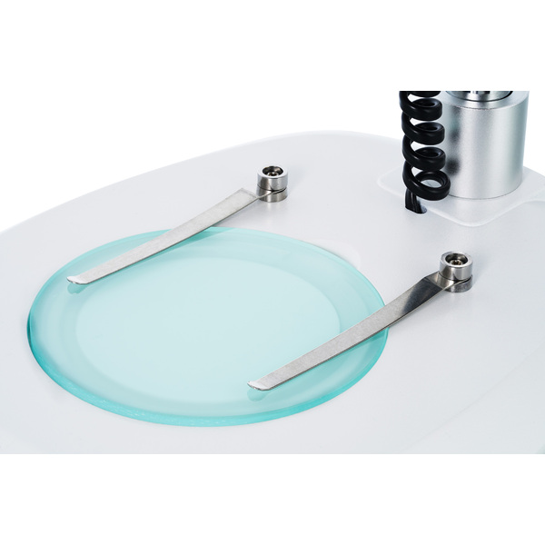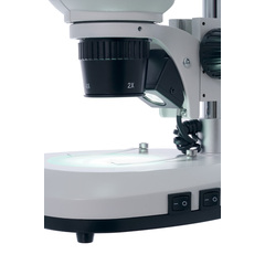 <p>За осветяване на образците се използват две лампи: горна и долна лампа. Двете лампи са светодиодни с регулиране на яркостта. Осветлението е с променливотоково захранване. Тази система за осветление дава възможност за изследване на образци с различна степен на прозрачност: непрозрачни, полупрозрачни и прозрачни.</p>