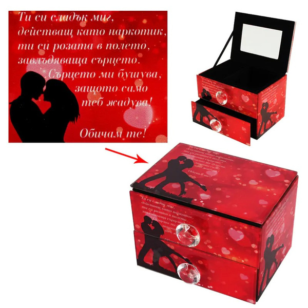 Бижутерка с 1 чекмедже и послание - Обичам те