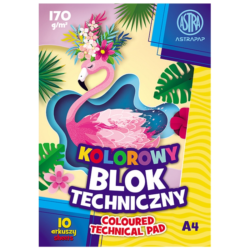 Техническо блокче, Astra, Фламинго, А4, 170 гр., 10 листа
