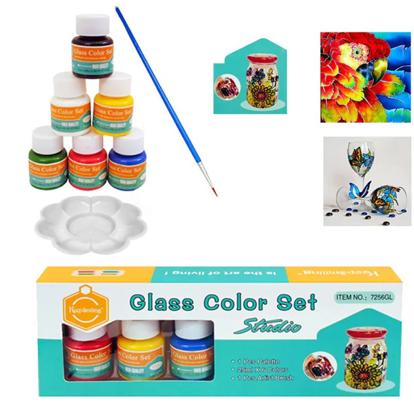 Бои за стъкло с четка и палитра /6 цвята х 25 милилитра/.