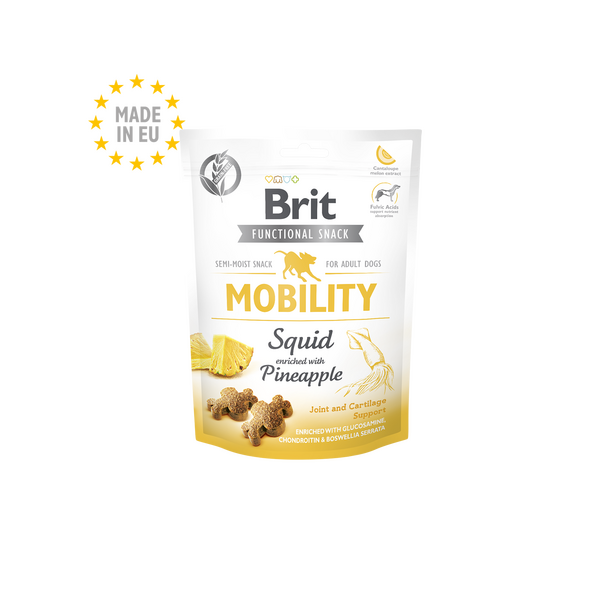 дехидратирани калмари (26%), тиква (20%), червена леща (15%), течно растително нишесте (14%), протеини от калмари * (10%), сос от сьомга * (5%), колаген * (4%), глюкозамин (1,5%), сушен ананас (1%), масло от сьомга (1%), хондроитин сулфат (1%), Boswellia serrata (0,5%), фулвокиселина (0,5%), минерали, мембрана на яйчната черупка (0,1%), екстракт от миди със зелени устни (0,1%), екстракт от пъпеш от пъпеш (0,01%), Lactobacillus acidophilus HA - 122 инактивирани (15x109 клетки / кг).