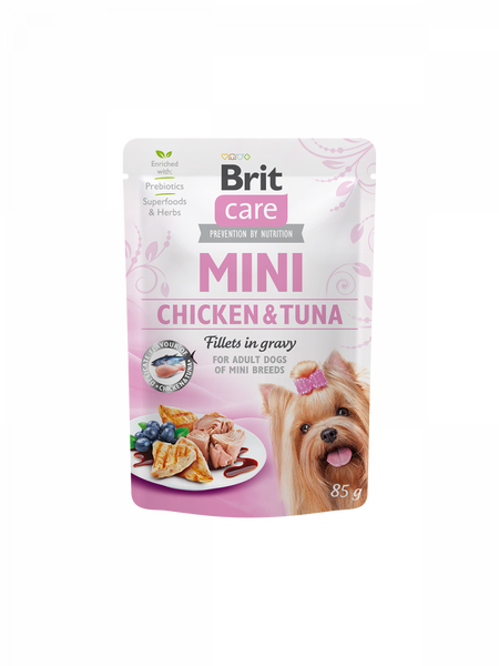 Парченцата филе от месо във вкусен сос са идеална добавка към гранули и за допълнително разнообразие в диетите на придирчиви кучета от малки и мини породи. Пълна суперпремиум храна за възрастни кучета от мини породи.