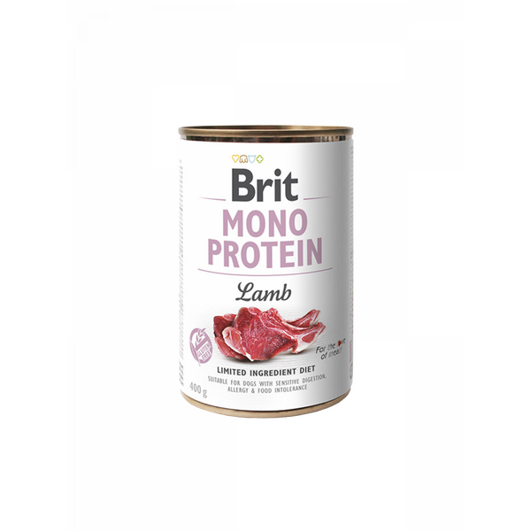 100% ЧИСТ АГНЕШКИ ПРОТЕИН. Brit Mono Protein осигурява пълноценно и балансирано хранене. Формулата е базирана на един вид протеин и е идеална за намаляване на риска от хранителни алергии и непоносимост.