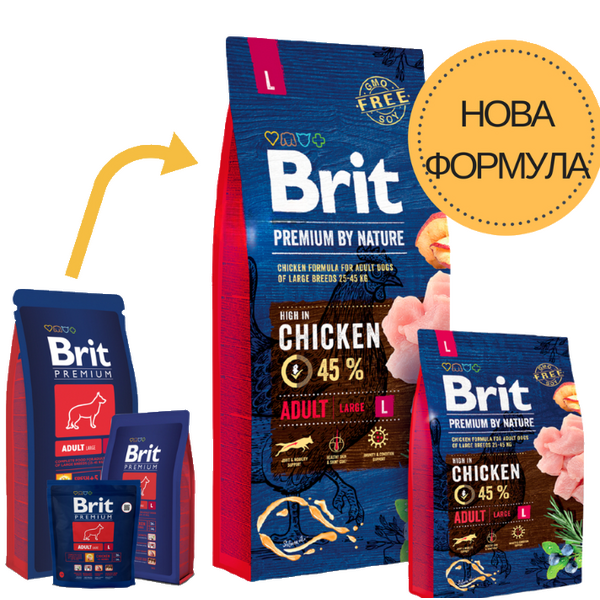 BRIT PREMIUM ADULT L BY NATURE [ НОВА, ПОДОБРЕНА ФОРМУЛА ] с 45% прясно пилешко месо 3 кг