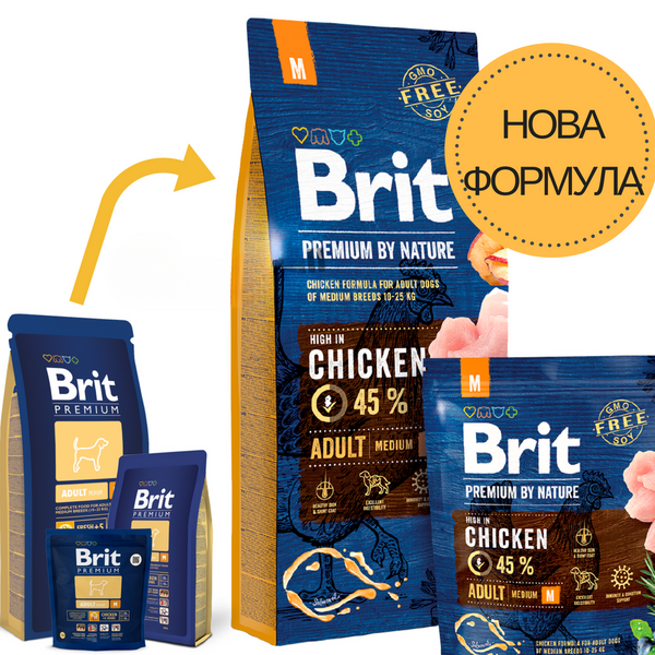 BRIT PREMIUM ADULT M BY NATURE [ НОВА, ПОДОБРЕНА ФОРМУЛА ] с до 45% прясно пилешко месо 1 кг
