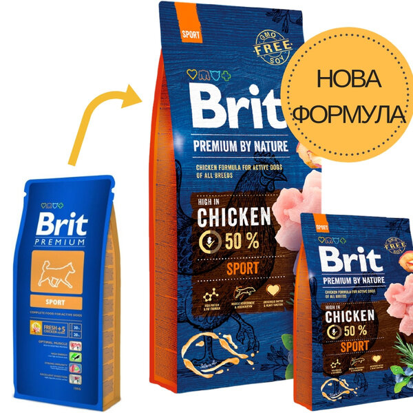 Brit Premium Sport BY NATURE [ НОВА, ПОДОБРЕНА ФОРМУЛА ] с 50% прясно пилешко месо 3 кг