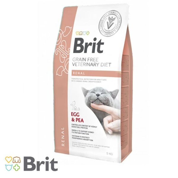 Диетична пълноценна храна за котки –  подпомага бъбречната функция при хронична бъбречна недостатъчност Препоръчва се при: ХРОНИЧНА БЪБРЕЧНА НЕДОСТАТЪЧНОСТ КАРДИОРЕНАЛЕН СИНДРОМ УРАТНА И ЦИСТИНОВА УРОЛИТИАЗА Ветеринарна диета BRIT Тя включва знания и опит, придобити през годините на успешно развитие и производство на храни за домашни любимци. Целта е да се предостави на ветеринарните лекари и техните клиенти безопасна и ПО-ДОБРА алтернатива на съществуващите марки. BRIT ВЕТЕРИНАРНИ ДИЕТИ – КЛЮЧОВИЯТ ПОДХОД Цялата гама от ветеринарната диета на Brit е създадена БЕЗ алергени като говеждо месо, млечни продукти, пшеница, царевица и соя. Източниците на протеин са внимателно подбрани, за да отговарят на хранителните нужди на домашните ни любимци. Формулите са обогатени с функционални съставки като пробиотици, биоактивни витамини и богати на DHA и EPA съставки за поддържане на хранителните и функционални свойства на диетите. Продуктите са тествани от ветеринарни клиники по стандартизиран метод. Основните предимства на формулите на Brit: БЕЗ ЗЪРНО Зърнените храни често са така наречените „празни калории“. Зърното често е свързано със затлъстяването на домашни любимци. Ето защо, Brit Veterinary diet е формулирана без зърно, което осигурява голяма поносимост на рецептите и предотвратява затлъстяването. ПРОБИОТИК Както при хората, така и при животните всички болести започват развитието си от стомаха! Поради тази причина Brit добавят пробиотици във всички ветеринарни храни.  Пробиотиците са съвременна функционална добавка, която допринася за подобряване на общото здравословно състояние и възстановяване чрез стабилизиране на чревната флора и храносмилането.  ОМЕГА-3, DHA, EPA Високо съдържание на богати на омега-3, DHA, EPA съставки, които осигуряват противовъзпалителен ефект и стимулират имунната защита. Благоприятстват за справянето с кожни проблеми. Състав: яйца (26%), жълт грах (25%), хидролизиран протеин от сьомга (10%), хидролизиран пилешки протеин (8%), пилешка мазнина (8%), елда, ябълкова каша, масло от сьомга (2%), хидролизирано пиле черен дроб (2%), черупки от яйца (източник на калций), минерали, бирена мая, калиев цитрат (0,8%), люспи и семена от псилиум (0,5%), сушени водорасли (0,5%, Ascophyllum nodosum), хитозан (0, 08%), екстракт от дрожди (източник на манан-олигозахариди, 0,025%), β-глюкани (0,022%), фрукто-олигозахариди (0,02%), Мохаве юка (0,02%), морски зърнастец (0,015%). Аналитични съставки: суров протеин 23,0 %, съдържание на мазнини 19,0 %, сурови влакнини 2,2 %, сурова пепел 5,2 %, влага 10 %, омега 3 0,75 %, омега 6 3,0 %, калций 0,7 %, фосфор 0,4 %, натрий 0,3 %, магнезий 0,08 %, калий 0,5%, аргинин 0,65%, таурин 0,23% Хранителни добавки в 1 кг.: витамин A (3a672a) 25 000 I.U., витамин D3 (E671) 850 I.U., витамин E (3a700) 1000 mg, витамин C (3a312) 400 mg, холин хлорид (3a890) 2300 mg, биотин (3a880) 3 mg, витамин B1 ( 3a821) 10 mg, витамин B2 30 mg, ниацинамид (3a315) 100 mg, калциев-D-пантотенат (3a841) 60 mg, витамин B6 (3a831) 35 mg, фолиева киселина (3a316) 15 mg, витамин B12 0,18 mg, цинк хелат на аминокиселини хидрат (3b606) 120 mg, железен хелат на аминокиселини хидрат (E1) 60 mg, манганов хелат на аминокиселини хидрат (E5) 60 mg, калиев йодид (3b201) 4 mg, меден хелат на аминокиселини хидрат ( E4) 3,5 mg, органична форма на селен, произведен от Saccaromyces cerevisiae CNCM I-3060 (селенизирани инактивирани дрожди) (3b8.10) 0,2 mg, таурин (3a370) 2300mg, L-картинин (3a910) 230 mg, аргинин (3c3.6.1.) 3 200 mg, L-метионин (3c305) 4 000 mg. Стабилизатори на чревната флора на 1 kg: Enterococcus faecium DSM 10663/NCIMB 104